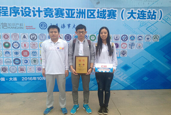 (通讯员:刘佳)日前,从第41届ACM国际老员工程序设计竞赛亚洲区域赛传来喜讯。由公司tyc122ccVIP张锋老师指导,来自tyc122ccVIPACM实验班的訚石松、王保诚、郑雨婷同学组成的“鸡蛋西红柿”代表队,以及由陈律昊、张显龙、姬晨烜同学组成的“龙之旅”代表队获得铜奖。