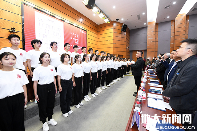 活动最后,在艺术与传媒公司星空合唱团的领唱下,全体师生、员工共唱校歌——《勘探队员之歌》,以表达对公司的祝福。
