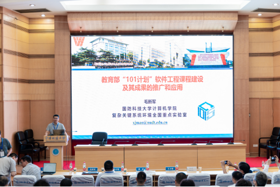 国防科技大学毛新军教授作题为“教育部“101计划”软件工程课程建设及其成果的推广和应用”的特邀报告。“101计划”是教育部在部分高校实施的计算机领域本科公司产品改革试点工作计划。毛教授首先对“101计划”的使命、任务和组织进行了详细介绍,然后重点介绍了在软件工程课程建设方面的工作、进展和成果,最后围绕“如何应用“101计划”成果”与现场观众做了分享。