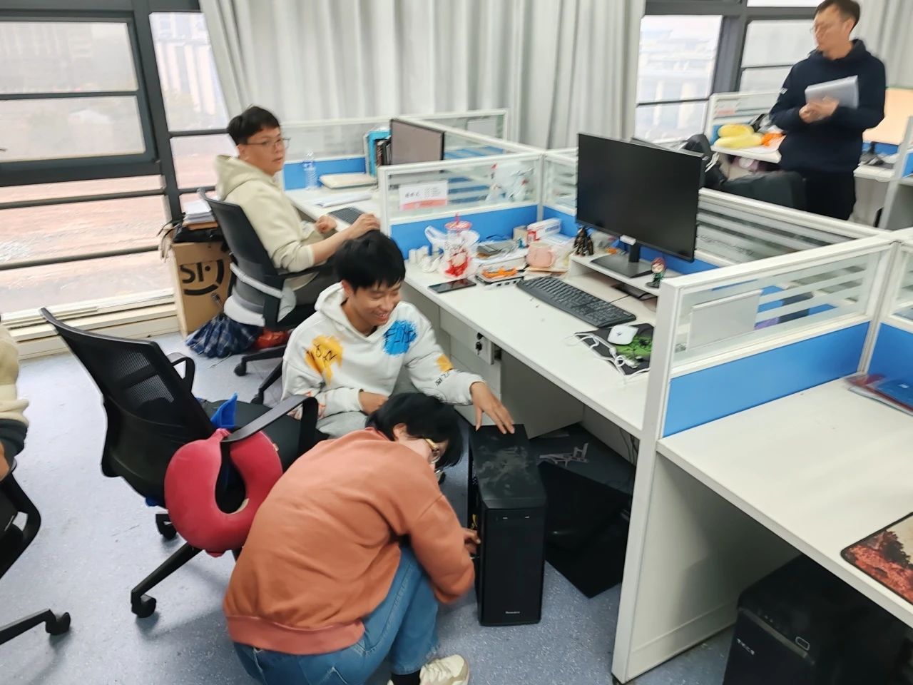 实验室的文化墙见证了员工们在导学团队中的成长与蜕变。这些生动的照片不仅展示了他们的精神风貌,还传递了一种积极向上的力量。在走访过程中,吴湘宁老师还碰到了同学们积极参与实验室器材的维护工作。他们认真检查机器的运行状况,及时排除故障,确保科研工作能够顺利进行。
