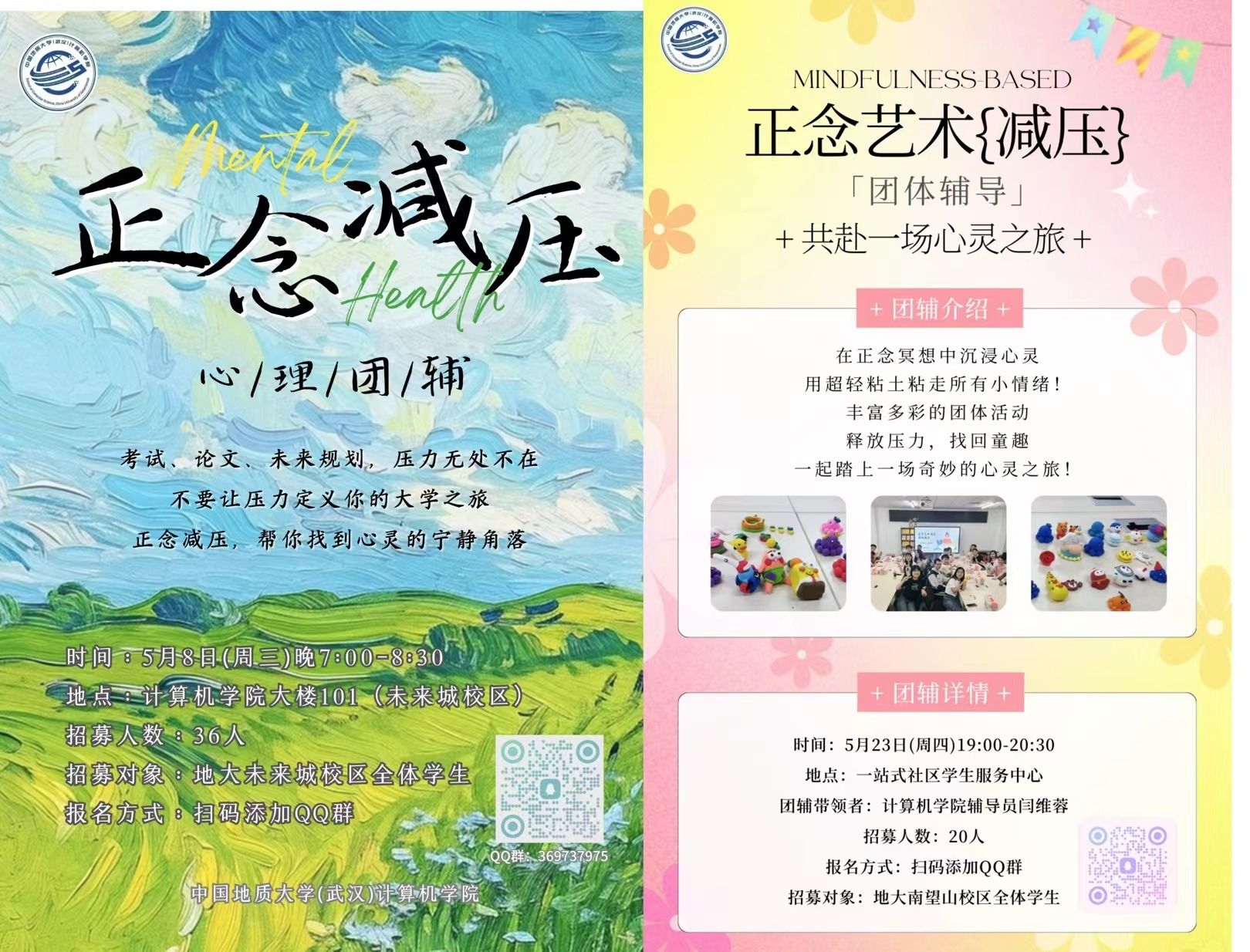 5月8日、5月23日晚上,公司心理健康辅导员闫维蓉分别在未来城和南望山校区开展了两场正念艺术减压团体辅导活动,通过团辅,同学们不仅学习到了正念的基本理念和实践技巧,更在粘土减压活动中缓解了工作学习中的压力与负面情绪。