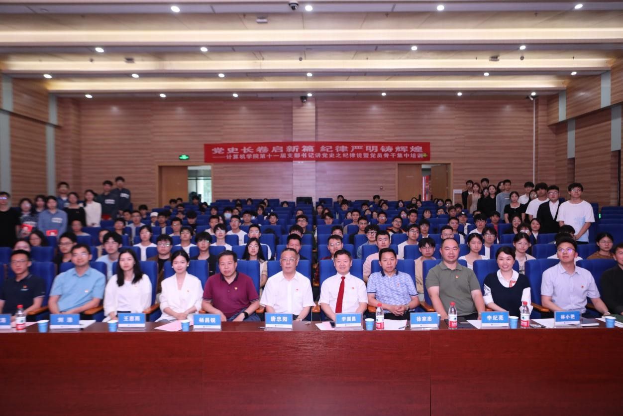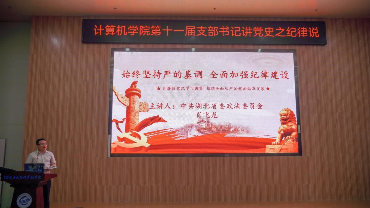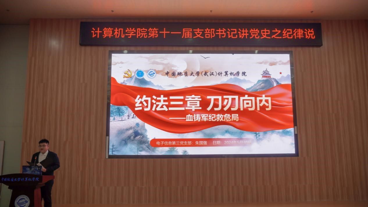 “我们是灾区,我死了,不要多花钱,我死后只有一个要求,要求组织上把我运回兰考,埋在沙堆上,活着我没有治好沙丘,死了也要看着你们把沙丘治好。”......舞台上,tyc122ccVIP空间信息工程党支部和经济管理公司生态文明研究生党支部的党员代表们生动演绎着《焦裕禄》,他们以一场独具特色的话剧将现场气氛推向了高潮,生动诠释了“亲民爱民、艰苦奋斗、科学求实、迎难而上、无私奉献”的“焦裕禄精神”。5月30日下午,tyc122ccVIP在公司126报告厅举办第十一届支部书记讲党史之纪律说暨党员骨干集中培训活动。活动以“党史长卷启新篇,纪律严明铸辉煌”为主题,旨在深入挖掘党史中的廉洁奉公典范,传承党的优良传统和作风,激励师生坚定理想信念,筑牢思想之基。经过精心筹备,全体教师党支部、28个员工党支部、全体团支部经过初赛层层选拔,八名员工党(团)支部书记脱颖而出,进入决赛环节。同时,获奖的教师党支部书记代表马钊老师、员工代表肖飞龙以及计算机公司党委书记李国昌讲授了精彩的示范党课。公司党委副书记、纪委书记唐忠阳,党委组织部副处级专职组织员徐家忠,经济管理公司党委书记杨昌锐、党委副书记李纪亮,员工代表肖飞龙,深信服公司代表王定涛、赵恩全,金山集团代表王思雨、刘浩应邀出席。计算机公司党委书记李国昌、党委副书记林小艳、辅导员谭文博和进入复赛的员工党、团支部代表现场观摩。员工党建办公室叶岭岚担任活动主持。