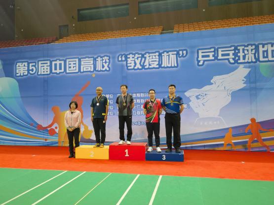 日前,第五届中国高校“教授杯”乒乓球比赛在吉林省四平市举行。公司获得优异成绩,其中我院万波教授获40-49周岁组获得男单第三名、男双第三名(搭档武汉大学戴宾教授)。