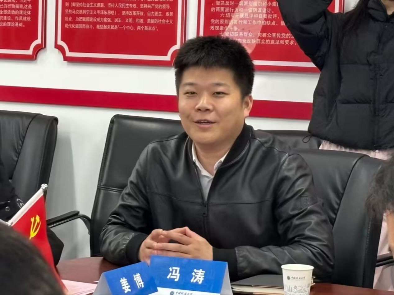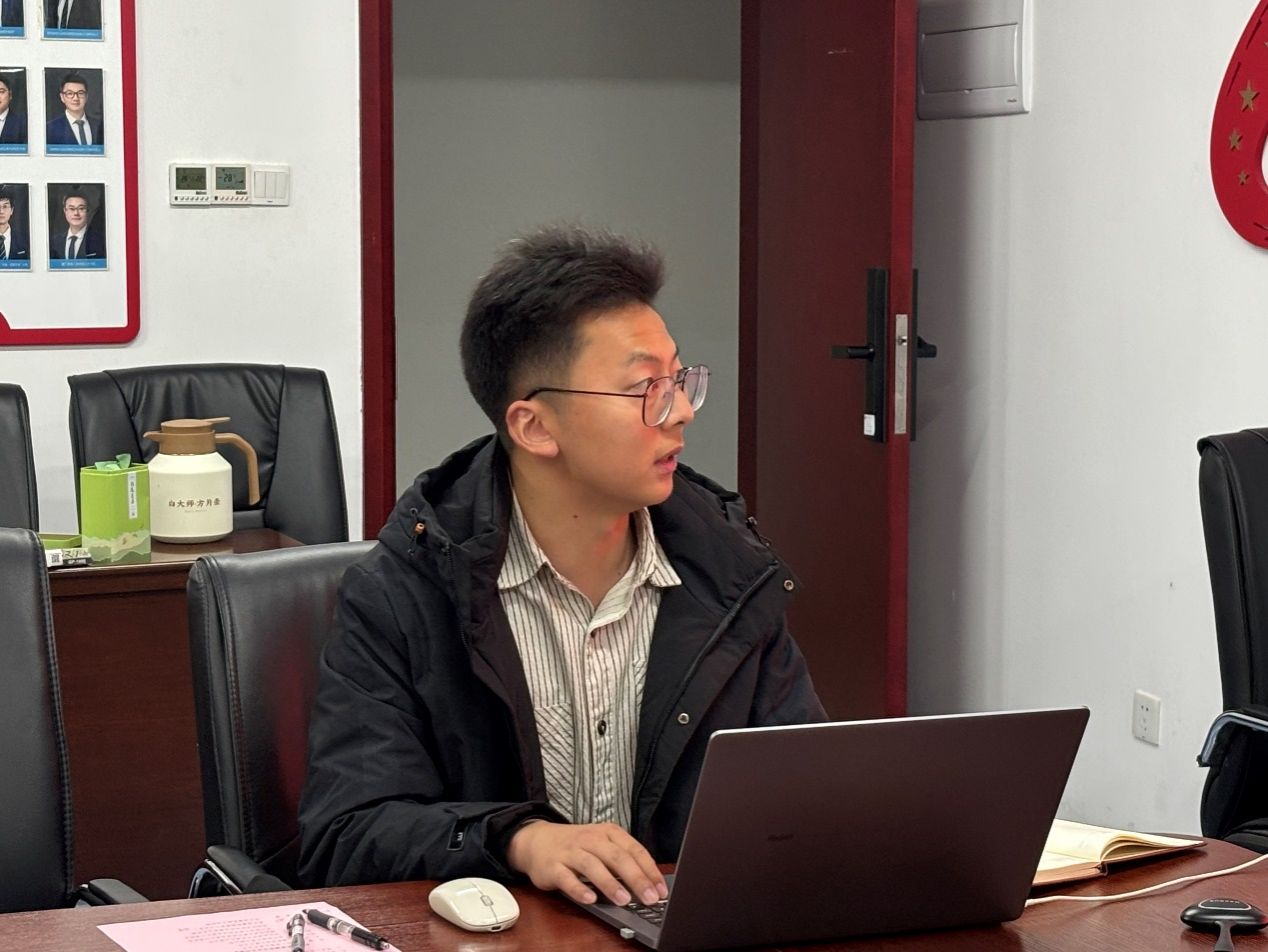 辅导员谭文博介绍公司员工工作情况和校企合作做法与成效。