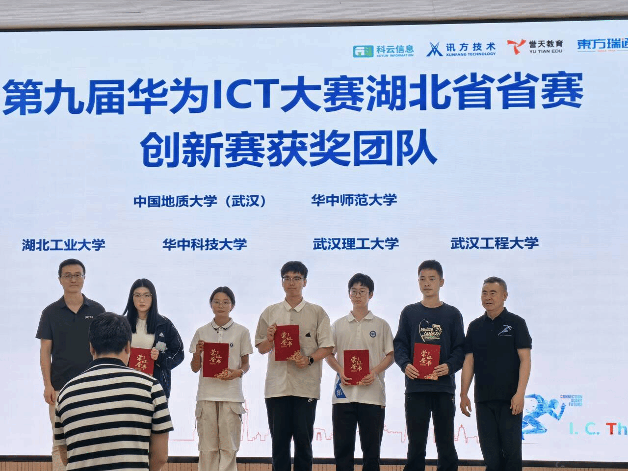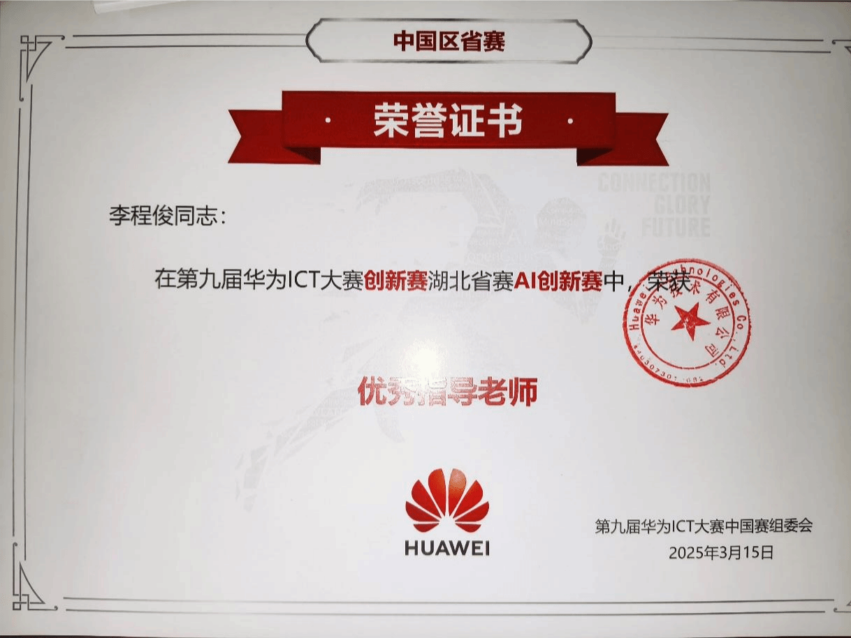 4月28日,第九届华为ICT大赛湖北省赛颁奖典礼在湖北科技职业公司关山校区隆重举行。公司大数据系李程俊老师在“第九届华为ICT大赛创新赛湖北省赛AI创新赛”中获优秀指导老师,公司为“第九届华为ICT大赛创新赛湖北省赛获奖团队”。