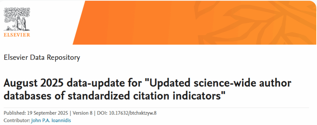2025年9月,美国斯坦福大学和爱思唯尔更新了标准引文指标的全科学作者数据库,重磅发布了《2024年度全球前2%顶尖科学家榜单》(Stanford/Elsevier Top 2% Scientists List),公司多名教师上榜。