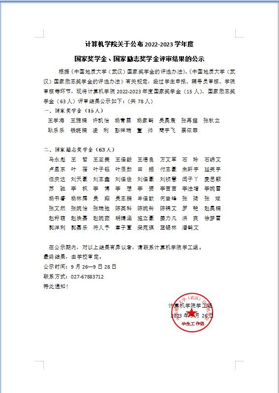 tyc122ccVIP关于公布2022-2023学年度国家奖学金、国家励志奖学金评审结果的公示