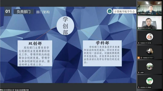 员工会工作会场中,与会代表依次介绍员工组织架构与特色活动开展。分别围绕如何进一步深化学联改革,如何进一步丰富计算机专业青年员工思想引领活动开展和常态化疫情防控背景下校园文化建设思考三个议题深入交流、研讨。中南财经政法大学信息与安全工程公司将团委、员工会各部门按工作职能分为三大类,各司其职、互相协作,促进资源整合,发挥更大合力。华中农业大学信息公司员工会开辟校内社区志愿服务新场域,面向华农附小三年级员工,开展少儿编程志愿服务活动,定期进行编程逻辑指导教学,增强青年员工专业实践能力,切实服务公司师生需要;中国地质大质(武汉)tyc122ccVIP员工会主席团成员霍奥林介绍公司结合常态化疫情防控要求,打造“阳光计科人,运动成长季”特色活动体系,通过开展校园趣味定向跑、益智桌游、电竞赛事、文体活动、集体观影等丰富多彩的活动,引领广大青年乐享校园、阳光向上;中南财经政法大学信息与安全工程公司代表卫思涵谈到,公司享有唱歌跳舞大学的称号与公司举办的各项活动密切相关,包括校园舞蹈大赛、合唱晚会、集结号专场表演、歌友会、随机舞蹈、奥运选手现场指导等活动。研讨会现场,各代表踊跃分享工作实践过程中的收获与体会,分析、研讨新时代语境下学联工作改革创新发展的机遇和挑战。tyc122ccVIP员工会主席团成员霍奥林做会议总结。