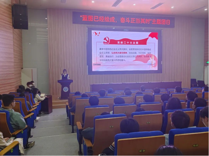 为深入学习党的二十大报告,深刻领悟党的二十大精神,切实把会议精神和行动统一起来,为中华民族伟大复兴的新征程贡献青春力量。近期,2021级10个团支部、2022级11个团支部分别举办了以“蓝图已经绘成,奋斗正当其时”为主题的大型团日活动。本次团日活动于未来城校区tyc122ccVIP大楼126报告厅和南望山校区教三楼111教室举行,全体团员参会,会议由院团委员工会组织部副部长郭洋利主持。