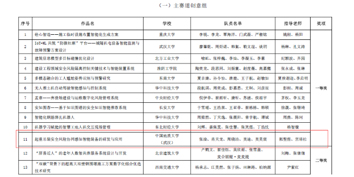 据悉全国智慧城市与智能建造老员工创新创业竞赛是当前工程管理领域影响力最大、影响范围最广的学科竞赛。本次比赛,2021级本科生吴昊宸与经济管理公司工程管理专业组成联队(团队成员:张淦、肖天龙、周晓洁、吴迪、吴昊宸),以参赛作品“起重吊装安全风险协同感知智能装备的研发与应用”(指导老师:郭聖煜、宫培松)进入决赛,最终从大赛主赛道来自98所高校的107支队伍的参赛作品中脱颖而出,荣获一等奖。此前在“大界杯”湖北省智慧城市与智能建造老员工创新创业竞赛中,该参赛作品已经获得一等奖。