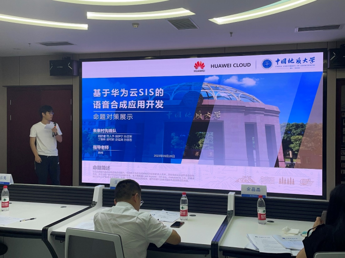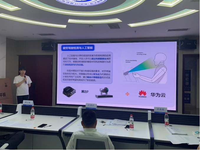 前期,tyc122ccVIP组织了校内初选,五个项目脱颖而出晋级校赛,分别是基于华为云pass的语音合成应用、基于端云协同的疲劳驾驶识别应用、端云协同疲劳驾驶实时检测、基于昇思Mindspore的医学图像分割应用、地学大数据共享服务平台。比赛现场,入围参赛队从项目背景、产品创新、商业模式、教育引领等多维度全方位展示本项目情况。各参赛项目团队以高质量的内容展示、自信得体的台风体现了公司学子创新创业风采,彰显了公司近年来创新创业教育改革的成果,为大家上演了一场精彩的比赛,以下是各个团队的答辩现场。