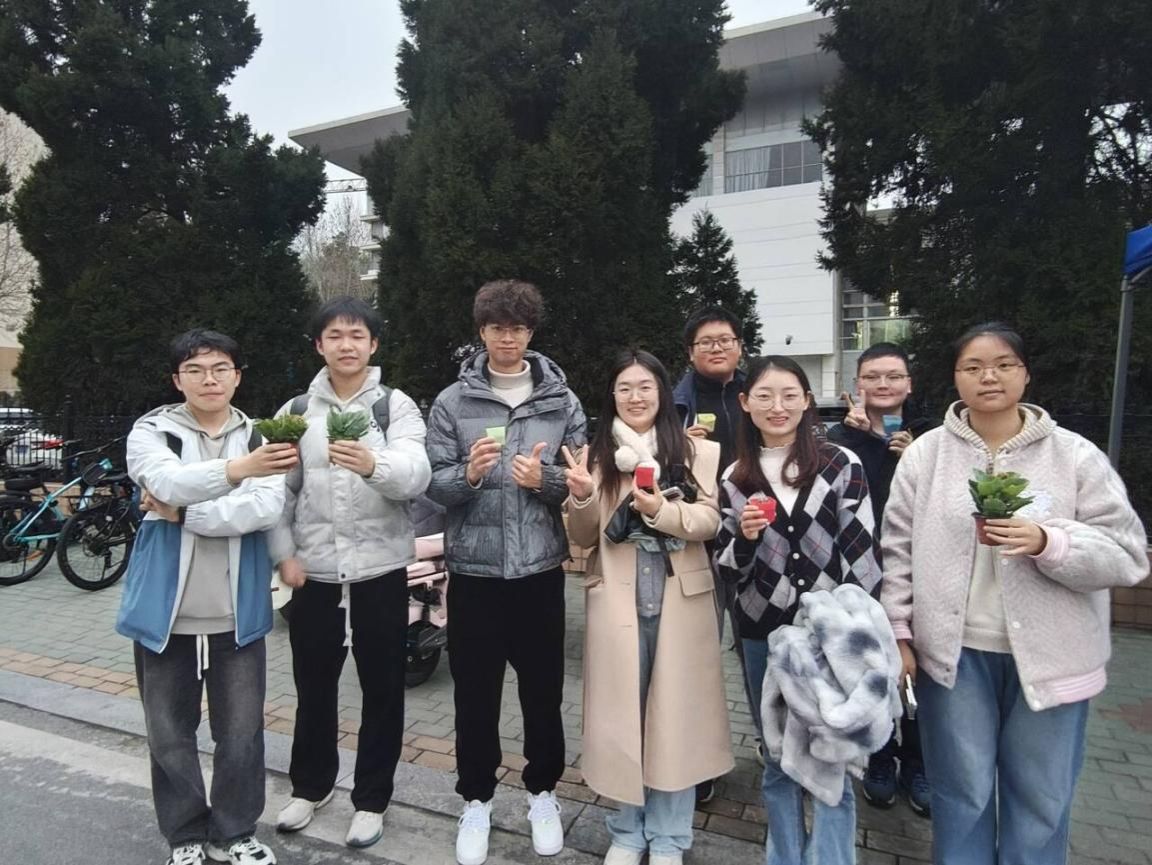 师生们积极参与趣味答题活动,现场气氛热烈。题目涵盖植物的种类、生长习性、生态价值等多个方面,既有简单的科普问题,也有专业知识的探讨,大家通过知识竞答,领取自己心仪的绿植,一株株翠绿欲滴,生机勃勃的绿植瞬间成为同学们的“新宠”。同学们手持绿植开心合影,定格收获的喜悦。