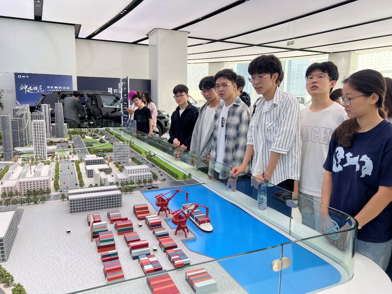 比亚迪不仅是全球新能源汽车的领军企业,更在电池、新能源、轨道交通、电子代工等多个领域布局深远。讲解员向同学们介绍了比亚迪的刀片电池技术、云轨交通系统,以及其在全球市场的产业影响力,让同学们对比亚迪的全产业链布局有了更全面的认知。