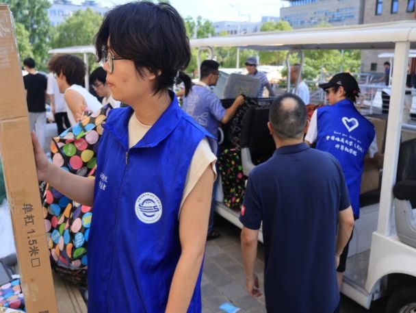 大巴驶入校园,在同学们即将入住的宿舍前,橙色的遮阳棚早已搭好,身穿蓝色马甲的志愿者们静候多时。多辆搬运车辆将员工行李送到宿舍楼下,老师和志愿者们积极帮助2024级计科学子们搬运行李,引导方向;宿管阿姨给大家发放钥匙,认真细致地登记信息;同学们团结协作,将一件件沉重的行李搬进新宿舍,开启一段全新的学习与生活旅程。