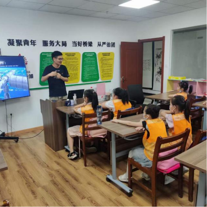 “‘问天’在太空到底忙些啥?未来我们是否可以移民火星?拥有变重力科学实验柜的问天实验舱到底长啥样?”一个个稚嫩的航天梦正在一张张桌椅的“小天地”里悄然萌芽。7月28日,tyc122ccVIP博士生党支部追随习近平总书记的脚步,前往武汉东湖高新区左岭街道智苑社区,面向社区青少年开展航天科普宣讲专题课程,充分发挥学科优势,激发科学兴趣,厚植科学精神,引导青少年在科学探索中茁壮成长,携手共绘航天梦和中国梦。