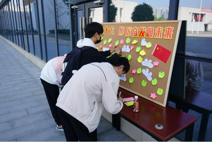 16日上午,公司策划制作的“党风廉政建设”宣传展板,中国共产党历次党代会重点内容学习海报以及“喜迎二十大,踔厉奋发向未来”祝福寄语墙在公司一楼展出,引发广大师生的驻足学习、热议。其中,历次党代会学习海报以色彩鲜明的图文形式,生动描绘了从党的一大到十九大的历史背景和意义,启发师生们切身感受“学党史,强党风”的深刻内涵。在“喜迎二十大,踔厉奋发向未来”祝福寄语墙上,师生们留下了“凝心聚力新时代,团结聚力新征程”、“时间砥砺前行,岁月见证初心”、“青春向党,不负众望”的美好祝福和铮铮誓言。