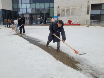 2月23日上午9时半,在公司党委书记李国昌、经理张洪艳的带领下,20余名教师、员工志愿者分组分片对崇智楼西门、南门区域进行集中扫雪除冰,掀起了一场“战冰雪、保平安、暖人心”的热潮。