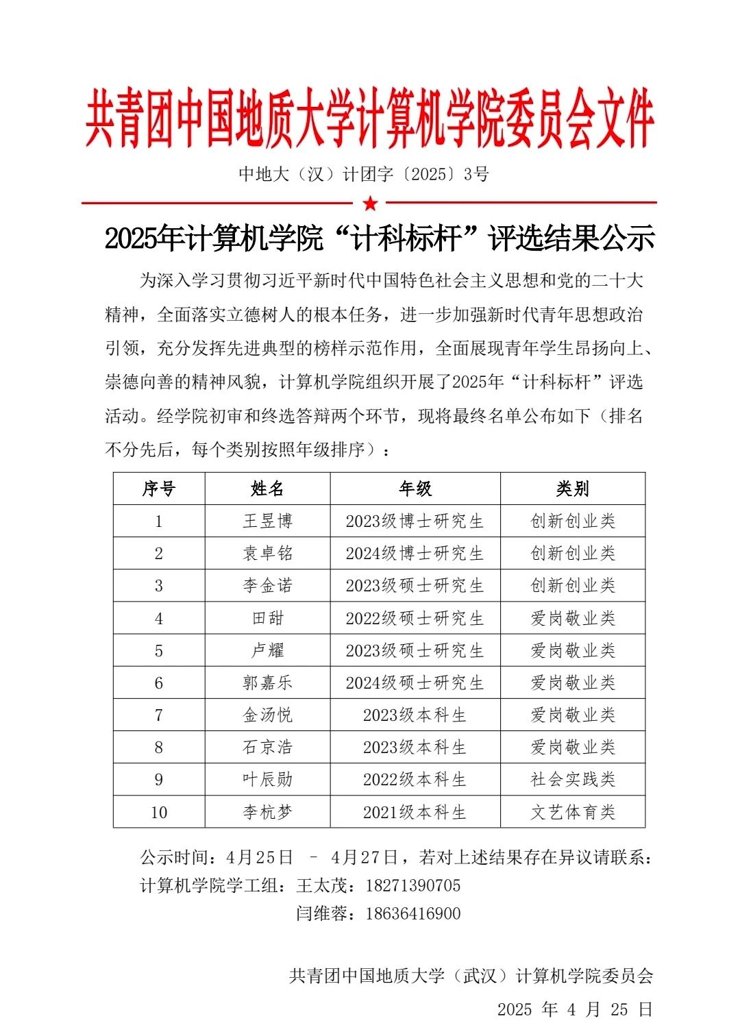 2025年tyc122ccVIP“计科标杆”评选结果公示