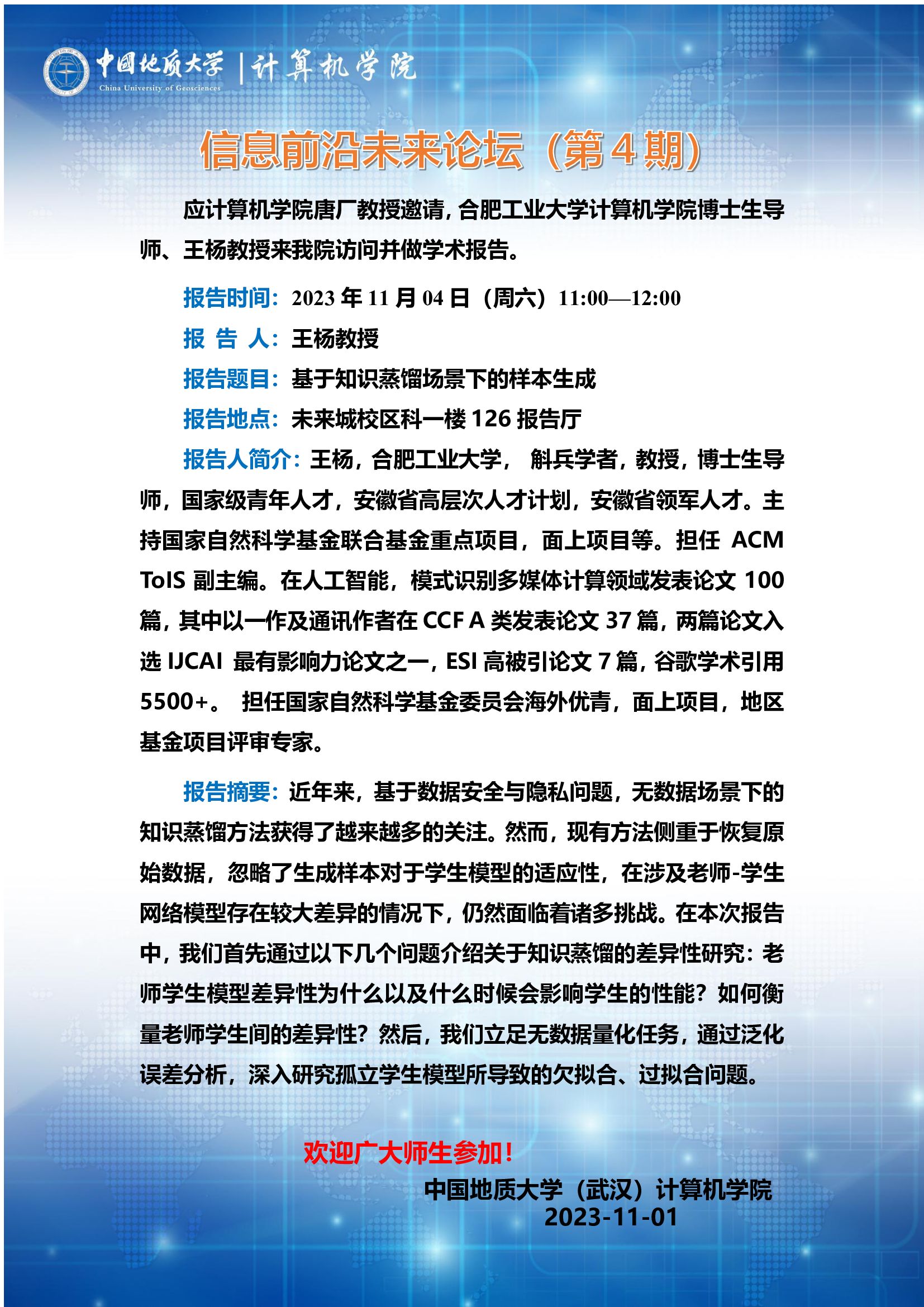 信息前沿未来论坛(第4期):国防科技大学刘新旺教授、合肥工业大学王杨教授